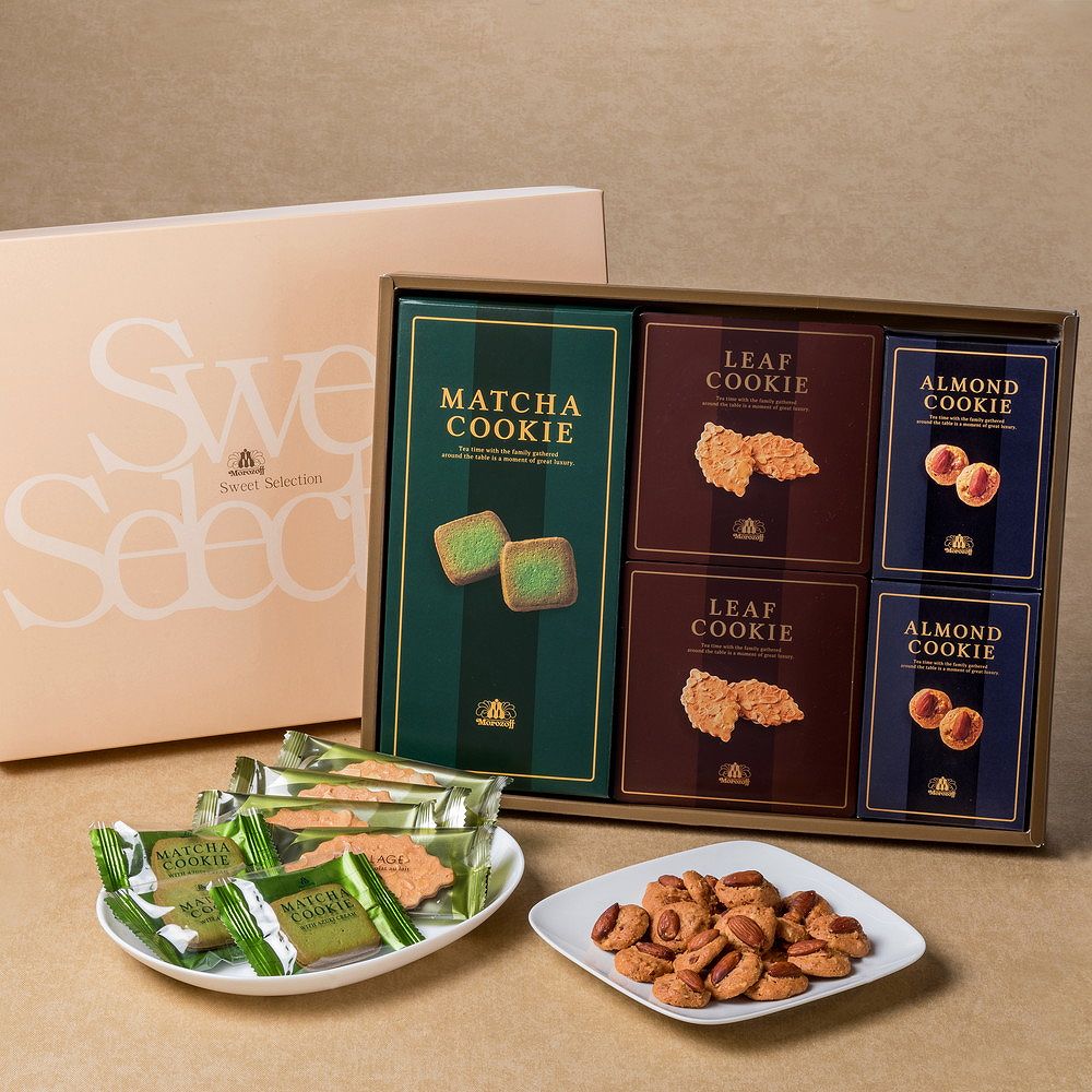 ■モロゾフを代表するクッキーアルカディアと薄く軽やかな食感が繊細に重なりあう風味豊かなファヤージュと愛知県西尾産の抹茶を使用した香り豊かな生地に、上品な甘さの小倉あん風味のクリームサンド。「さくり」とした食感のお濃茶クッキーの贅沢なセット。