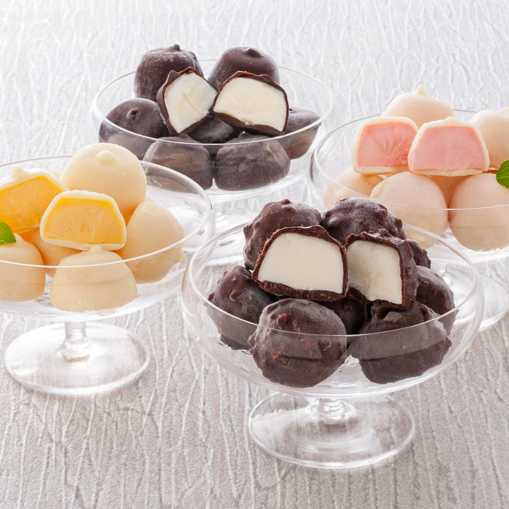 ■バニラ・クランチ・ストロベリー・マンゴーの4種類が楽しめる、一口サイズのアイスです。子どもから大人まで、みんなで楽しめるボリューム感のあるアイスギフト。フランス国家最優秀職人章「M.O.F」受章の女性天才シェフ、アンドレ・ロジェ監修。