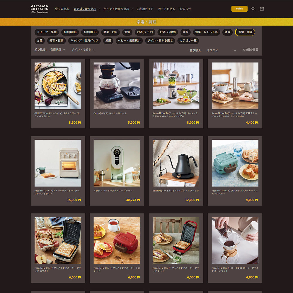 ■付与されたポイントの数だけ、お好きな商品とご交換いただけるギフトです。