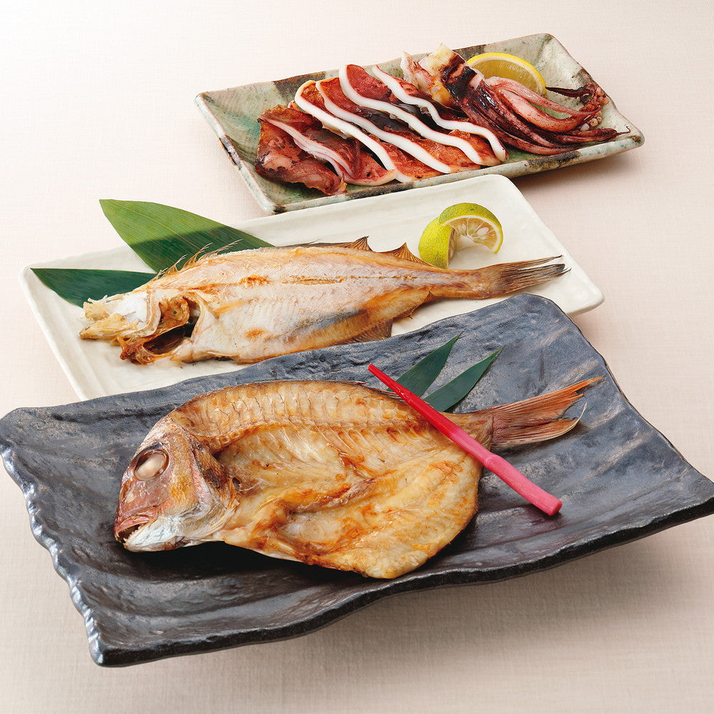 いか一夜干し2枚、宗八カレイ干し2尾、真鯛干し250g/真いか・宗八カレイ・真鯛:山形県産