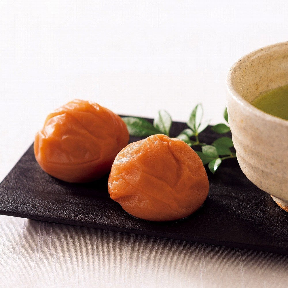 酸味をまろやかに、塩分をわずか3%に抑えて、健康を気にする方にもうれしい、より食べやすい梅干しに。和歌山県産「南高梅」を使い、国産はちみつで、ほどよい酸味と甘みが調和した味に仕上げました。皮は薄く、果肉は熟して厚くやわらかく、お茶請けにぴったりです。