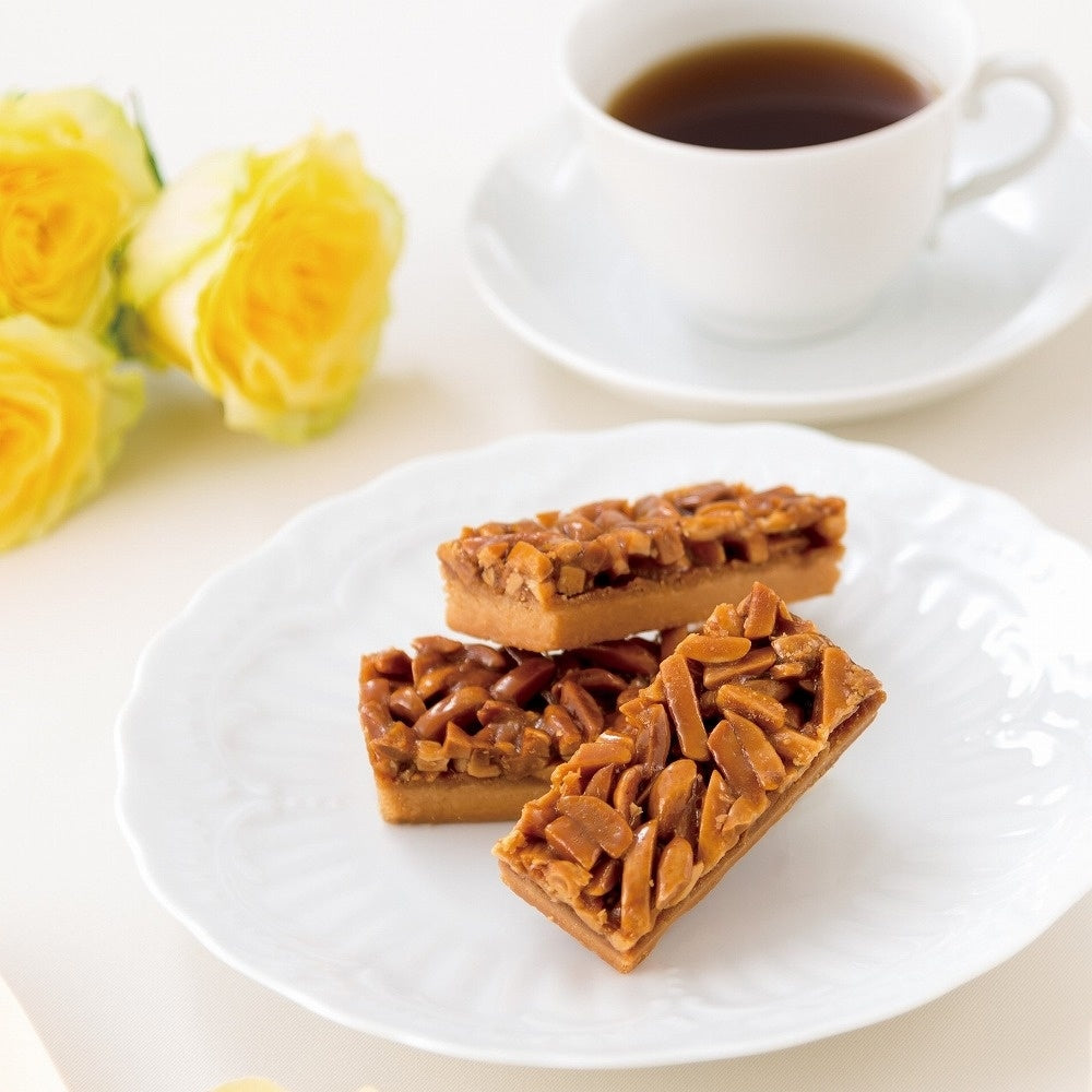 山形で人気を誇るレストランが手がけるパティスリー『ESCARGOT』のフロランタンは、北海道産発酵バターをふんだんに使い、風味豊かに仕上げています。キャラメルで包まれたアーモンドのザクザクッとした歯ざわりと、口の中でクッキーとアーモンドが混じるコクのある味が楽しめます。