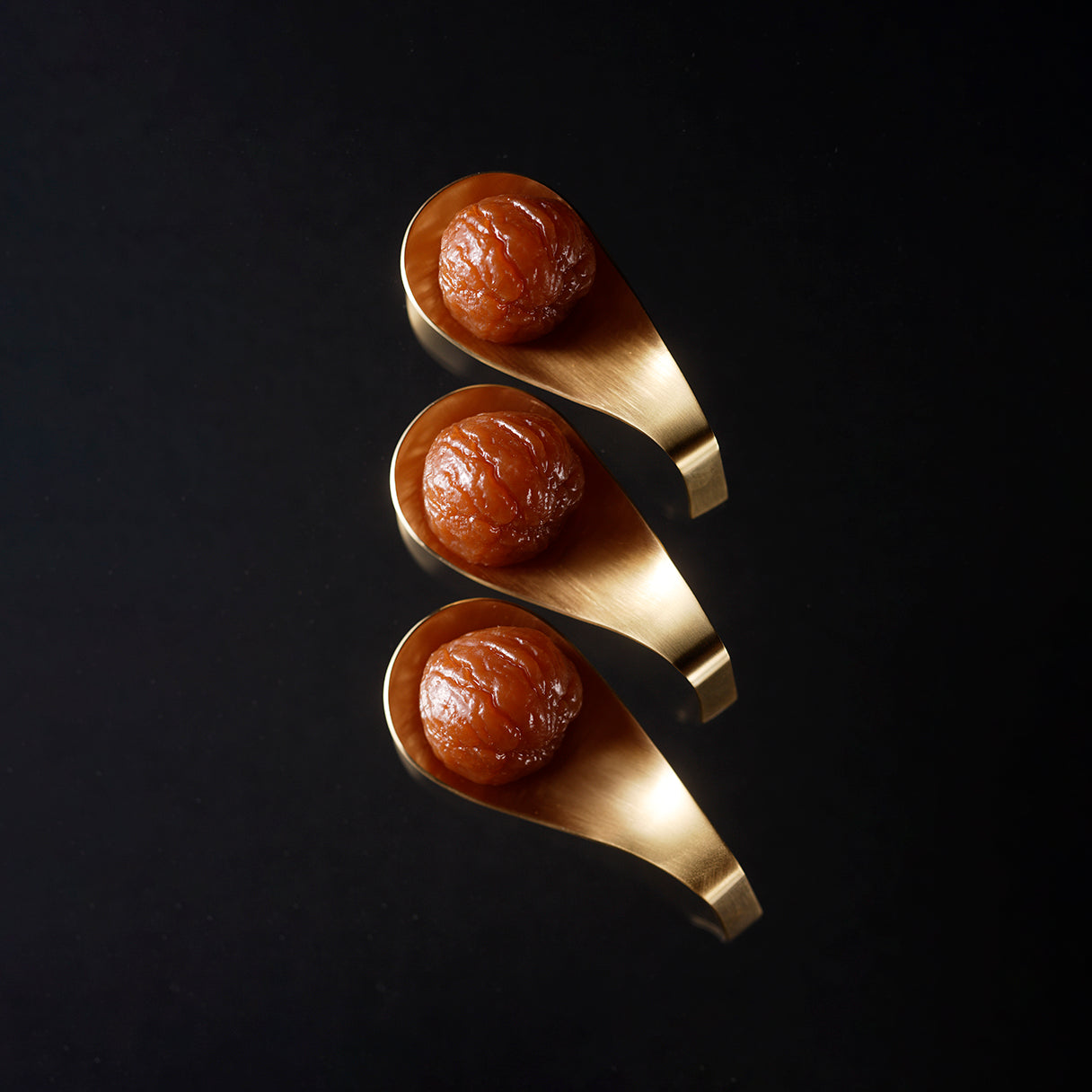 ■ナポリ周辺の厳選したイタリア栗を独自に仕入れ、コニャックなどを使用した 特製シロップでじっくり漬け込んだ「お菓子の宝石」とも呼ばれる逸品です。漬け込みのみはマロンコンフィと呼ぶパティシエも多いのですが、弊社でも一粒一粒職人が仕上げに糖衣がけを行っております。手間暇がかかり、日本で自社生産しているメーカーは非常に稀ですが、 弊社は全ての工程にこだわり、自社生産しております。