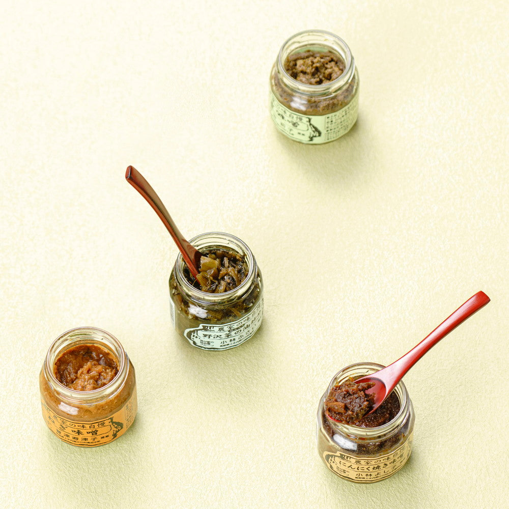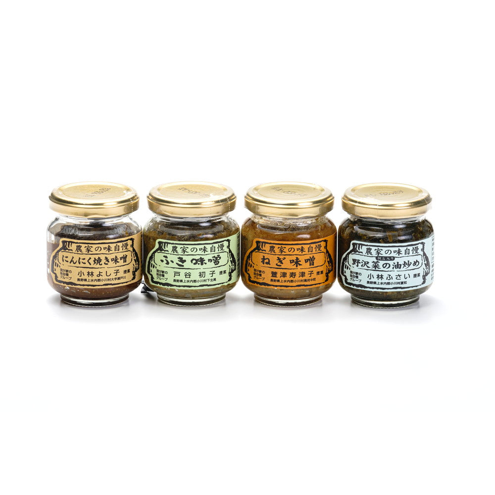 ■内容量:にんにく焼き味噌・ふき味噌・ねぎ味噌・野沢菜油炒め 各90g