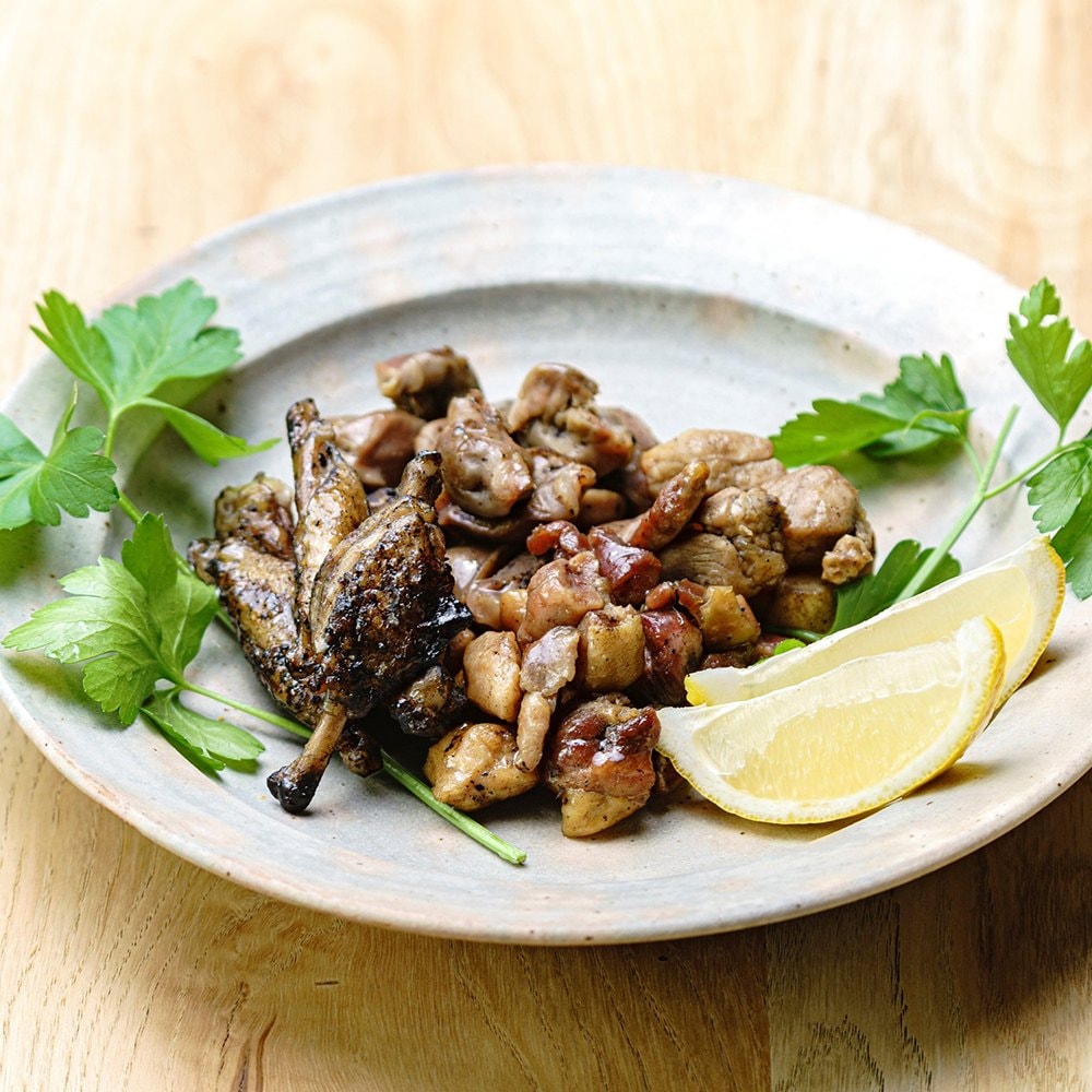 ■内容量:九州産赤鶏の炭火焼95g×2、福岡県産玄海ポークの炭火焼80g、九州産砂肝の炭火焼80g、九州産手羽中の炭火焼80g