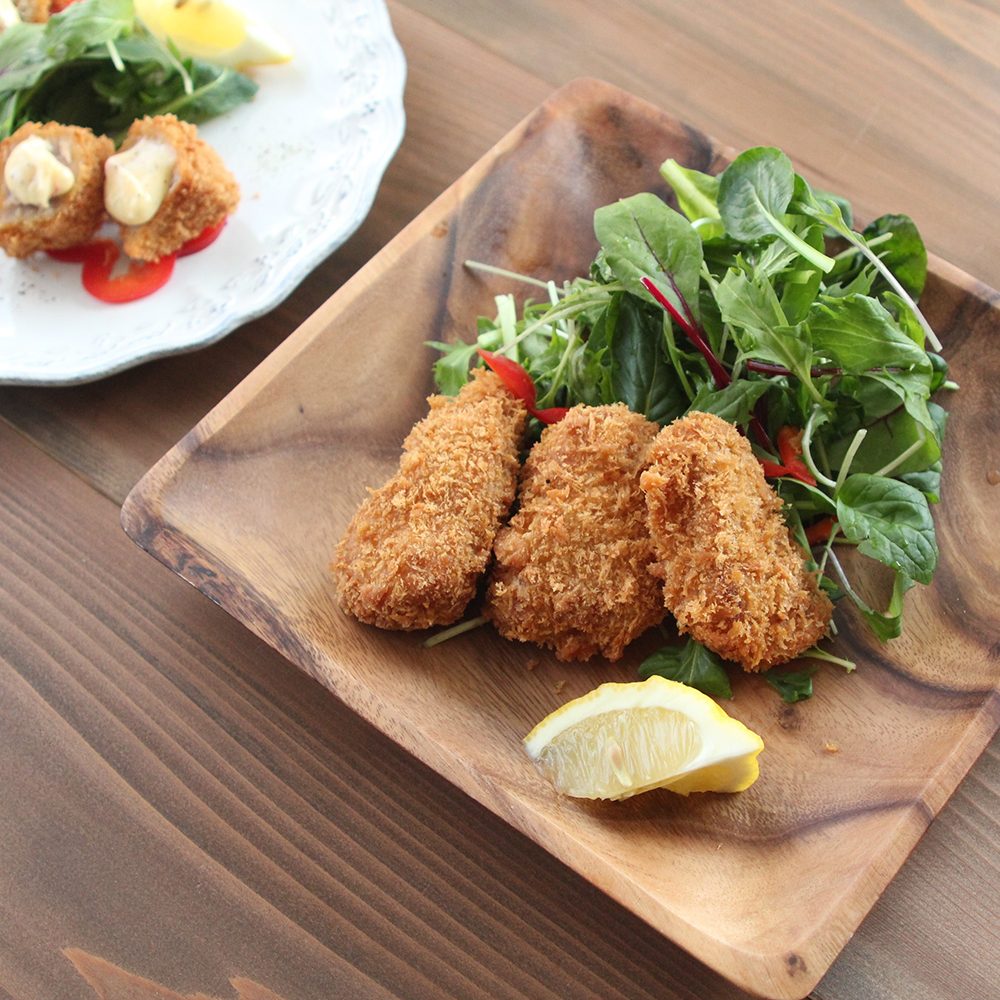 まぐろを肉厚にカットして衣をつけました。オリジナルの塩だれに漬け込む事によってしっかりとした味付けになっています。