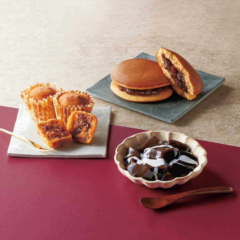 ■商品内容:ふっくらどら焼き×4個、もっちりわらび餅×4個、ほくほく小豆のスイートポテト×2個 計10個入り