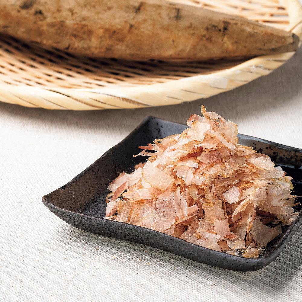 ■約半年かけて4番カビ付けを施した本枯節を、老舗鰹節店伝統の技で極薄に削り上げました。たっぷり凝縮した旨み、豊かな風味、とろけるような食感が特長です。