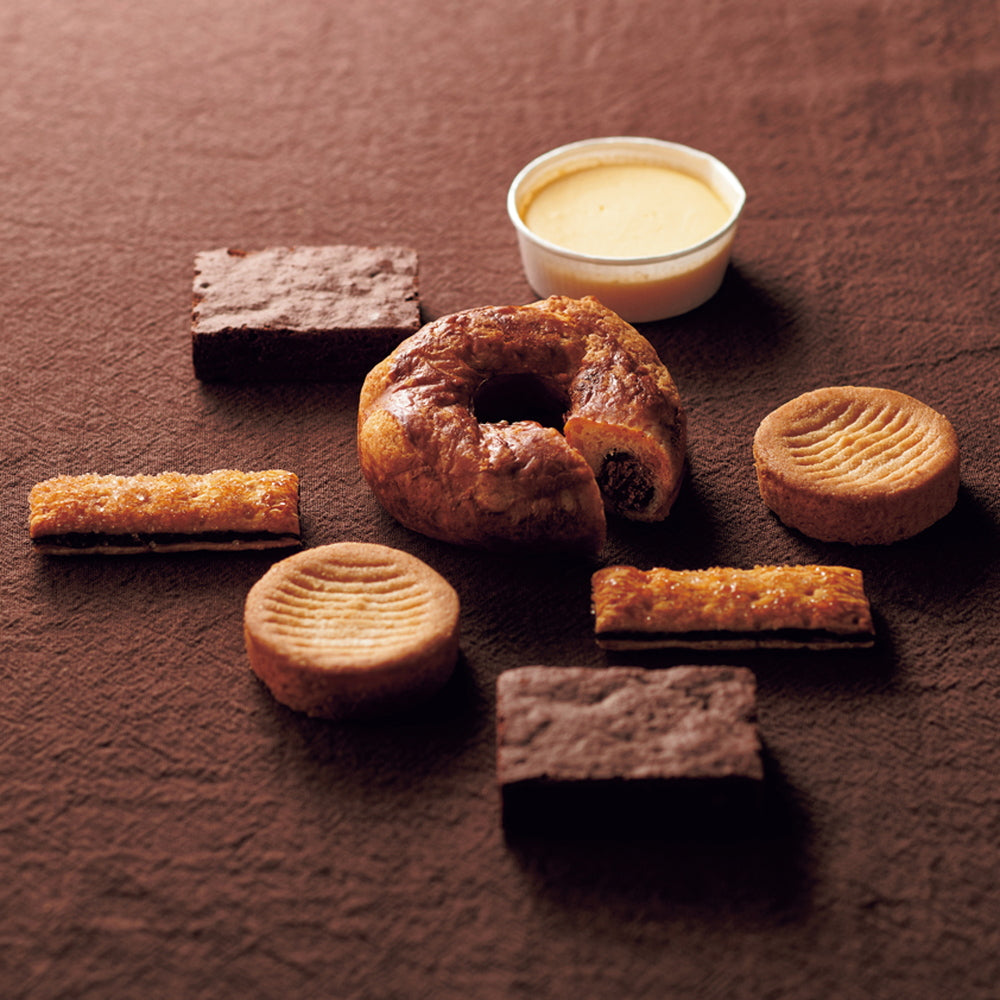 サクサクチョコパイ×4個、ホワイトチョコ入りチーズガレット×3個、世にもおいしいチョコブラウニー×2個、冷やして食べる!ベイクドチーズケーキ・魔法のチョコパイリング×各1個