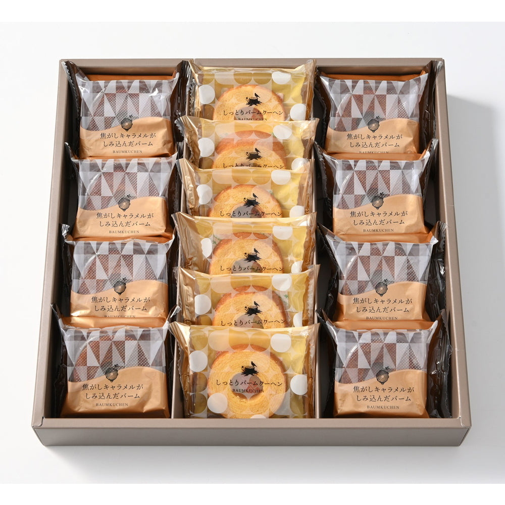 焦がしキャラメルがしみ込んだバーム×8、しっとりバームクーヘン×6