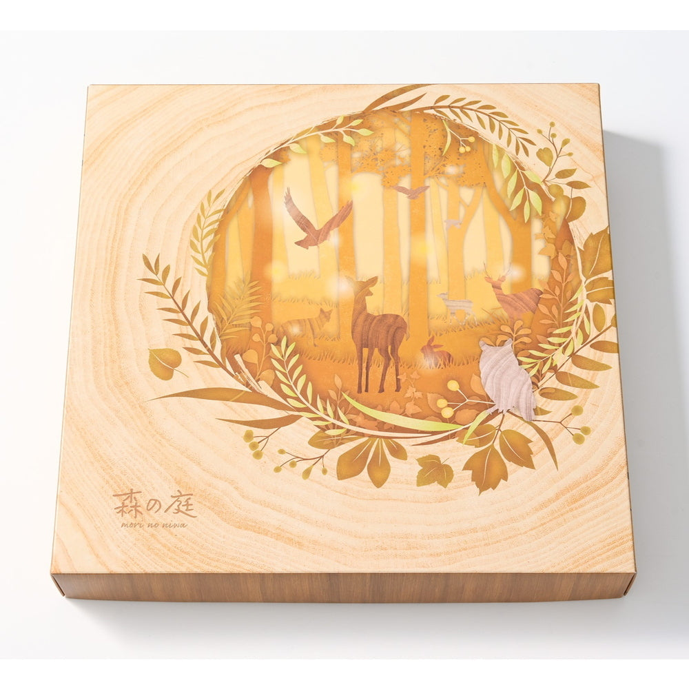 ■非日常の森の庭で素朴なお菓子を味わう『森の庭』シリーズ。しっとりバームクーヘンにカラメルソースをまとわせ、砂糖をかけてさらに焼き上げた「焦がしキャラメルがしみ込んだバーム」と、「しっとりバームクーヘン」の2種を詰め合わせました。ひと手間かけた味わいをお楽しみください。