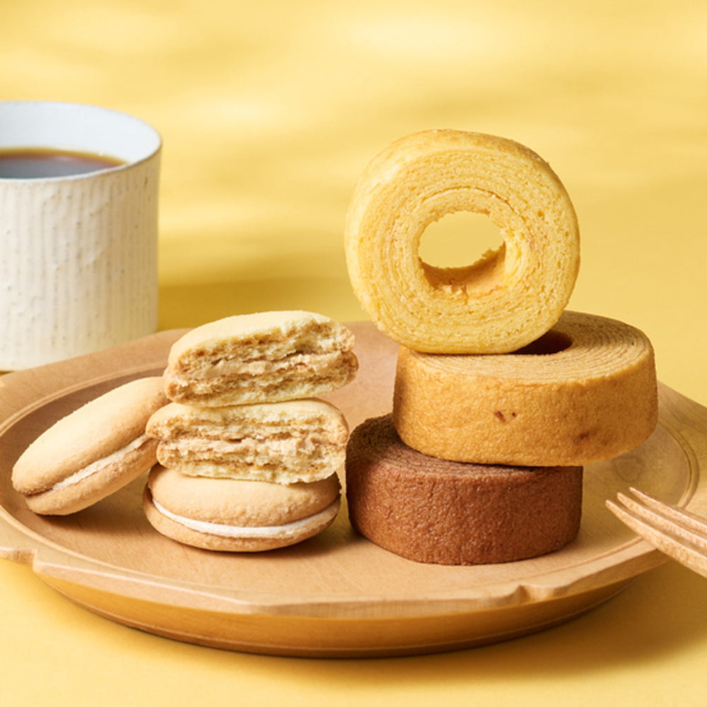 ■ふんわりとした食感にしっとり優しい甘さのプティバームは、ミルク・ココア・黒糖の味わいをご用意。大人からお子様まで幅広い年齢層にも喜んでいただけます。また、サクサククッキーにメープルクリームとキャラメルクリームを挟んだ7層仕立てのサンドクッキー。1枚の厚みに食べ応えとクリームの心地よい甘さをご堪能いただけます。