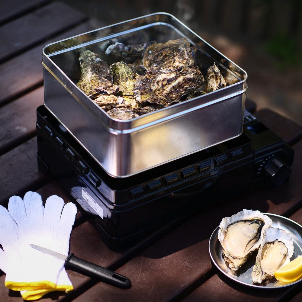 ■広島牡蠣の身太りが最も良くなる時期に水揚げされた殻付牡蠣を鮮度・風味そのままに殻ごと冷凍し、カンカン焼きのセットにしました。軍手とナイフも付いており、カセットコンロでもアウトドアでも簡単に牡蠣のカンカン焼きがお楽しみいただけます。