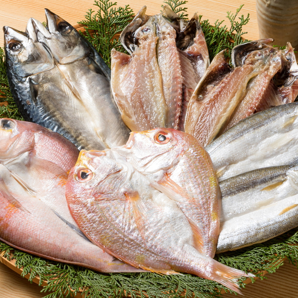 ■九州近海で水揚げされた、旬の天然鮮魚をすぐに開き加工。五島灘の自然の海水から作った塩で甘汐加工し、熟成乾燥で干しあげました。5種類のお魚をお楽しみください。