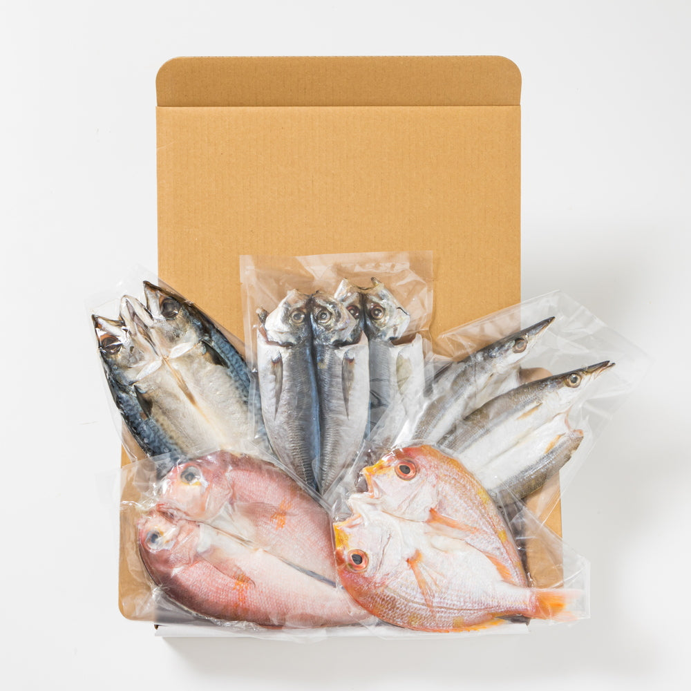 甘鯛180g、れんこ鯛130g、かます70g×2枚、真さば160g、真あじ70g×2枚