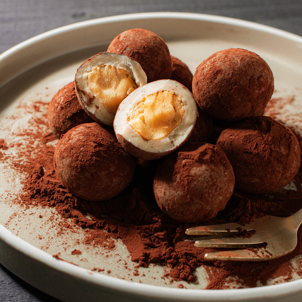 ■大粒のナッツをチョコレートでコーティングした、bubó BARCELONA定番のチョコフルーツコレクション。大粒のマカダミアナッツを、バニラの香り立つホワイトチョコレートでコーティングし、ココアパウダーで仕上げました。海塩がアクセントのホワイトチョコレートと、香ばしいマカダミアナッツが、絶妙なハーモニーを奏でます。満足感のある一粒は、やみつきになる逸品です。インターナショナルチョコレートアワード2020銀賞を受賞。