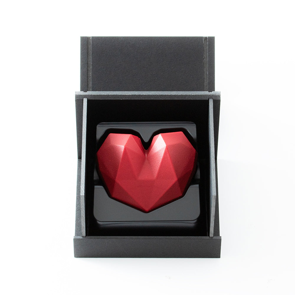 ■宝石のように美しい、ハート形のチョコレート。箱を開けると真紅のハートが姿を現し、まるで宝石箱を開けた時のような感動が広がります。ミルクチョコレートでかたどった手のひらサイズのハートの中に、心ときめく3つのハートを詰め込みました。ポップロック、マカダム、ブラウニーと、多彩な味わいが最後の一口まで幸せを届けます。溢れる愛をハートに込めて、心に残る特別なチョコレートを贈りませんか。