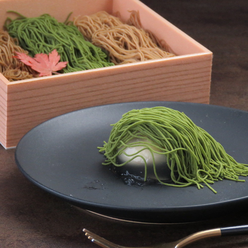 細い糸を美しく重ね合わせた、1.2mmの極細モンブランペースト。「お取り寄せモンブラン日本一」に選ばれた高級和栗モンブラン専門店「いも栗カボチャ」。