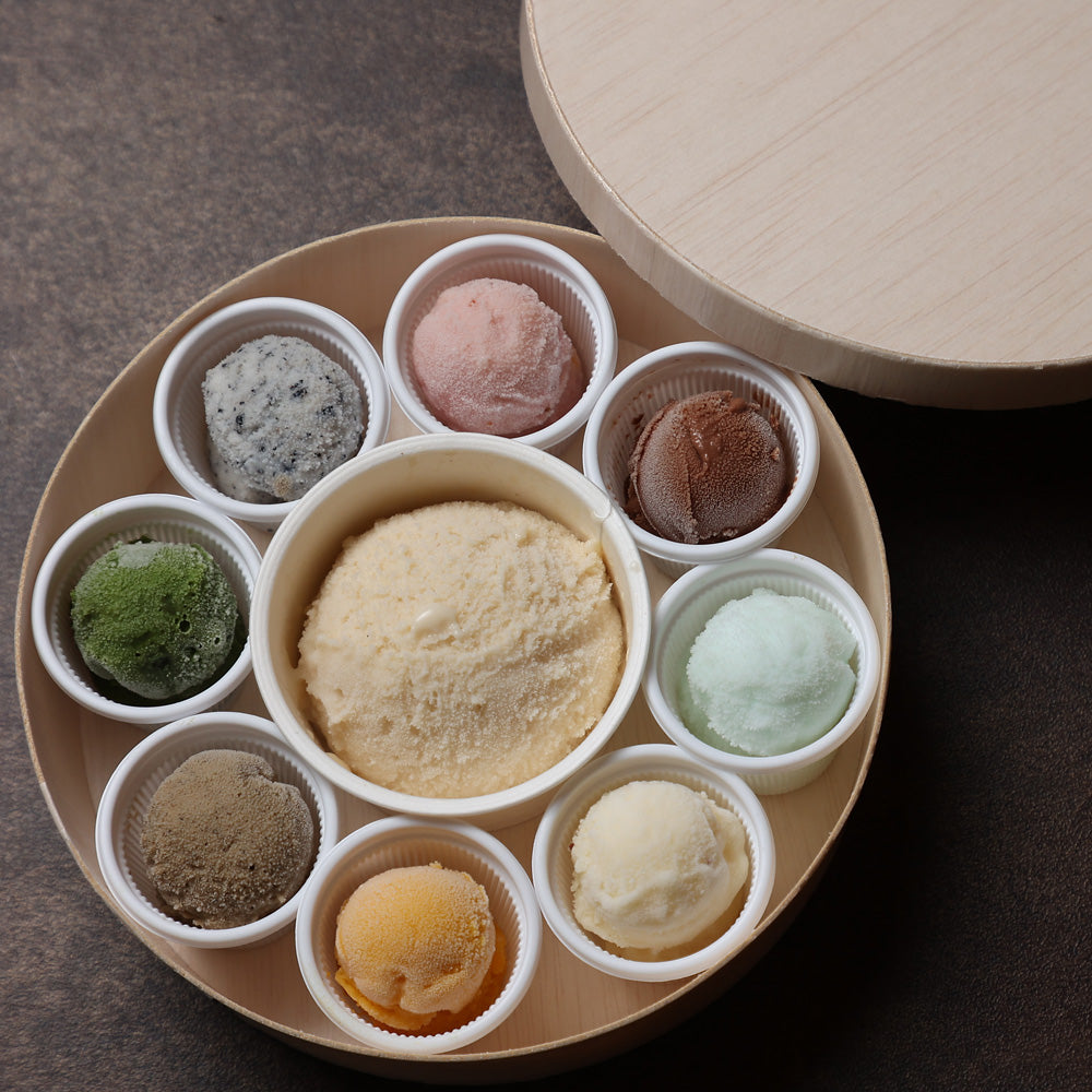 「絢爛~百万石ジェラート」は、石川県の豊かな自然と文化が詰まった、贅沢な和風ジェラートセットです。1日1個、9日間楽しめるように工夫されたこのセットには、金沢の五郎島金時さつまいもや抹茶、和栗、カボチャなど、地元の厳選素材がふんだんに使用されています。