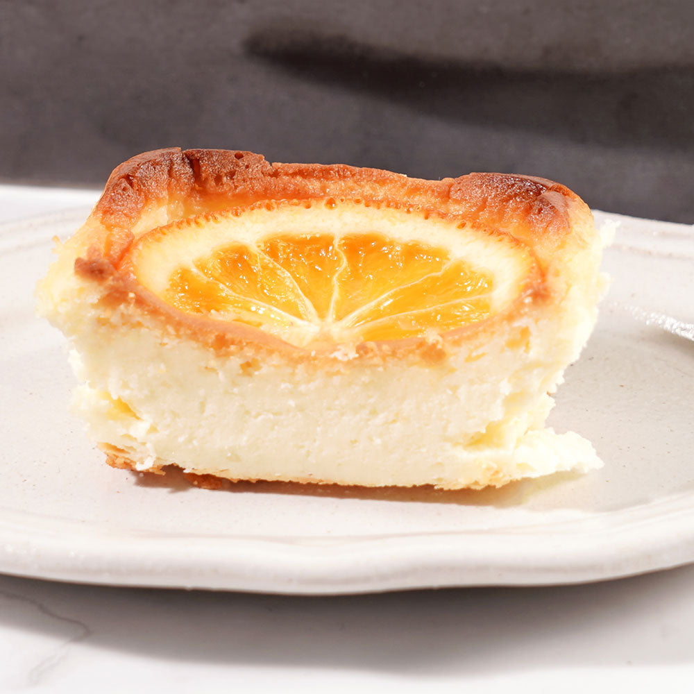 さわやかで、ふわっと広がるオレンジの酸味と鼻に抜けるオレンジの香りが、しっとり濃厚なチーズを包み込みます。オレンジの酸味で優しい香りのさっぱりしたコンビネーションを体感できる、柑橘景の風味香るチーズケーキです。