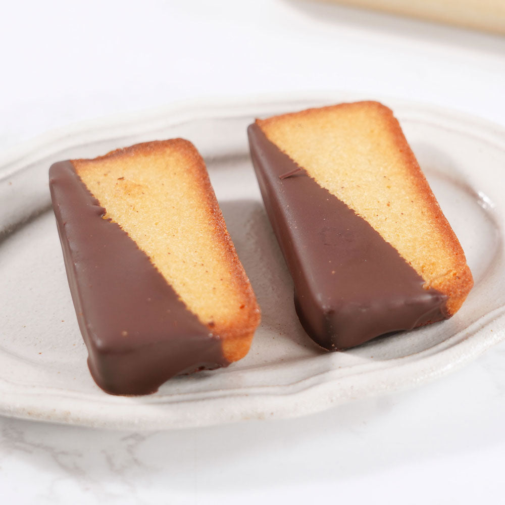 お菓子に深みを与える特別な卵とリッチな味わいのフランス産発酵バターを使用。こだわりの食材を使用した無香料、無着色のお子様にも安心の焼き菓子にショコラを纏った逸品です。
