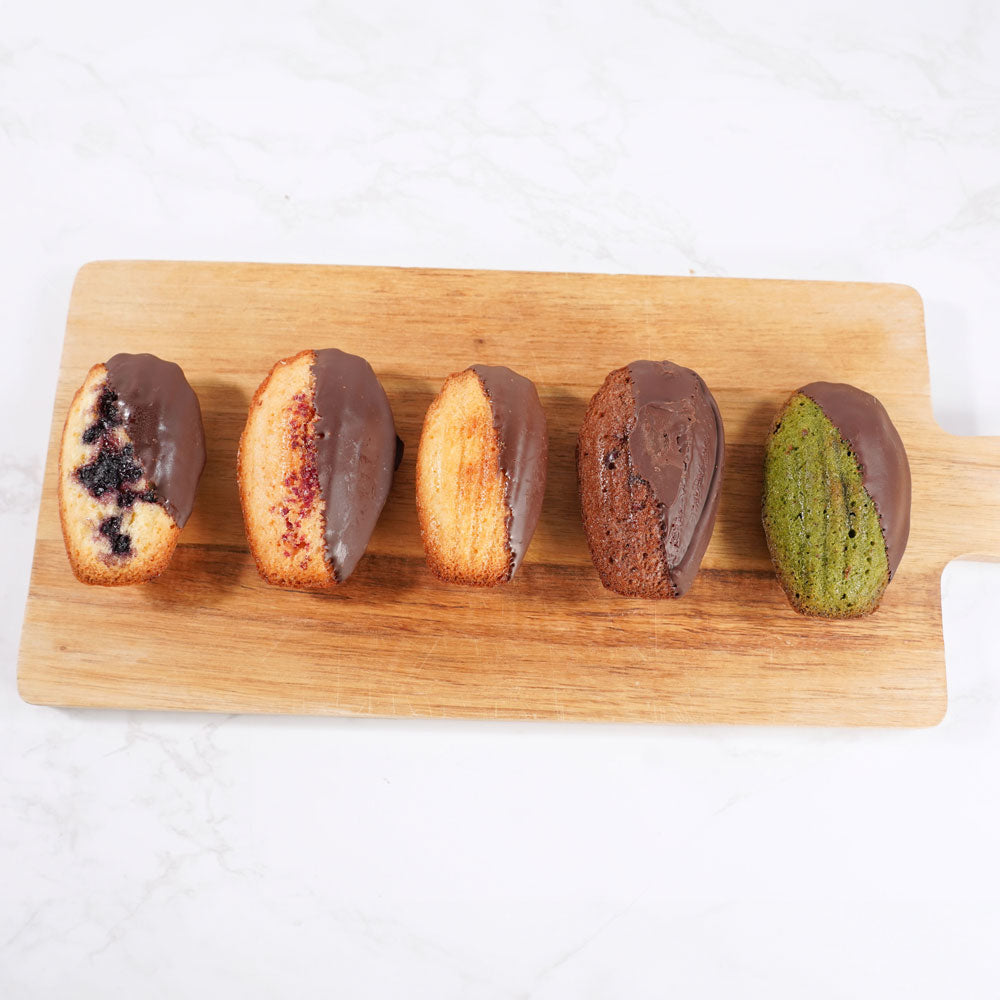 お菓子に深みを与える特別な卵とリッチな味わいのフランス産発酵バターを使用。こだわりの食材を使用したお子様にも安心のショコラをまとった贅沢な焼き菓子です。マドレーヌ4個入り(ベリー、抹茶、ショコラ、ブルーベリー)
