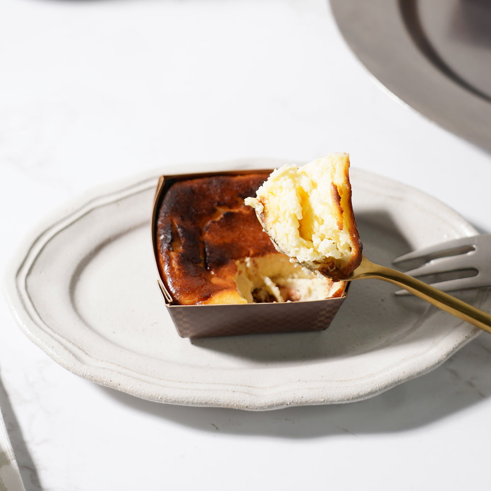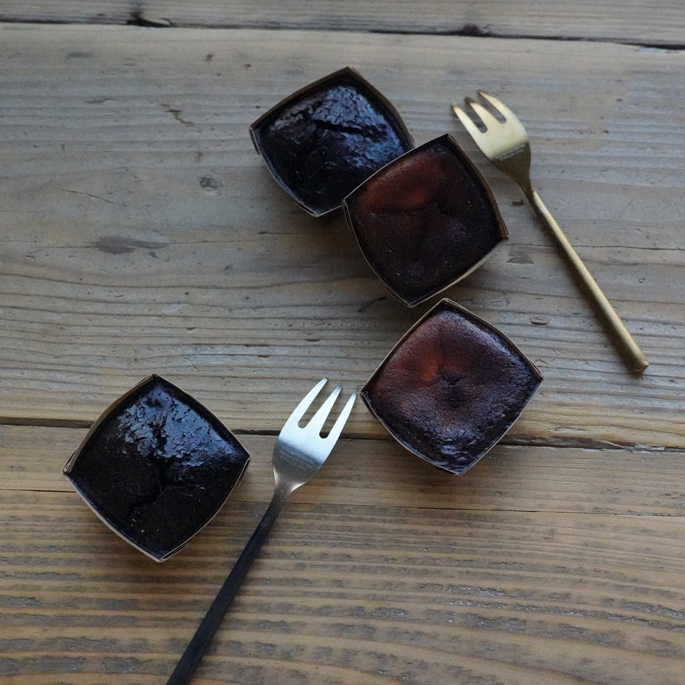 バスクチーズケーキ特有のカラメルの様な風味を纏っており、お茶やコーヒーに合うのはもちろんのこと、スペイン・バスク地方にならい、ワインと一緒に召し上がるのも一興です。