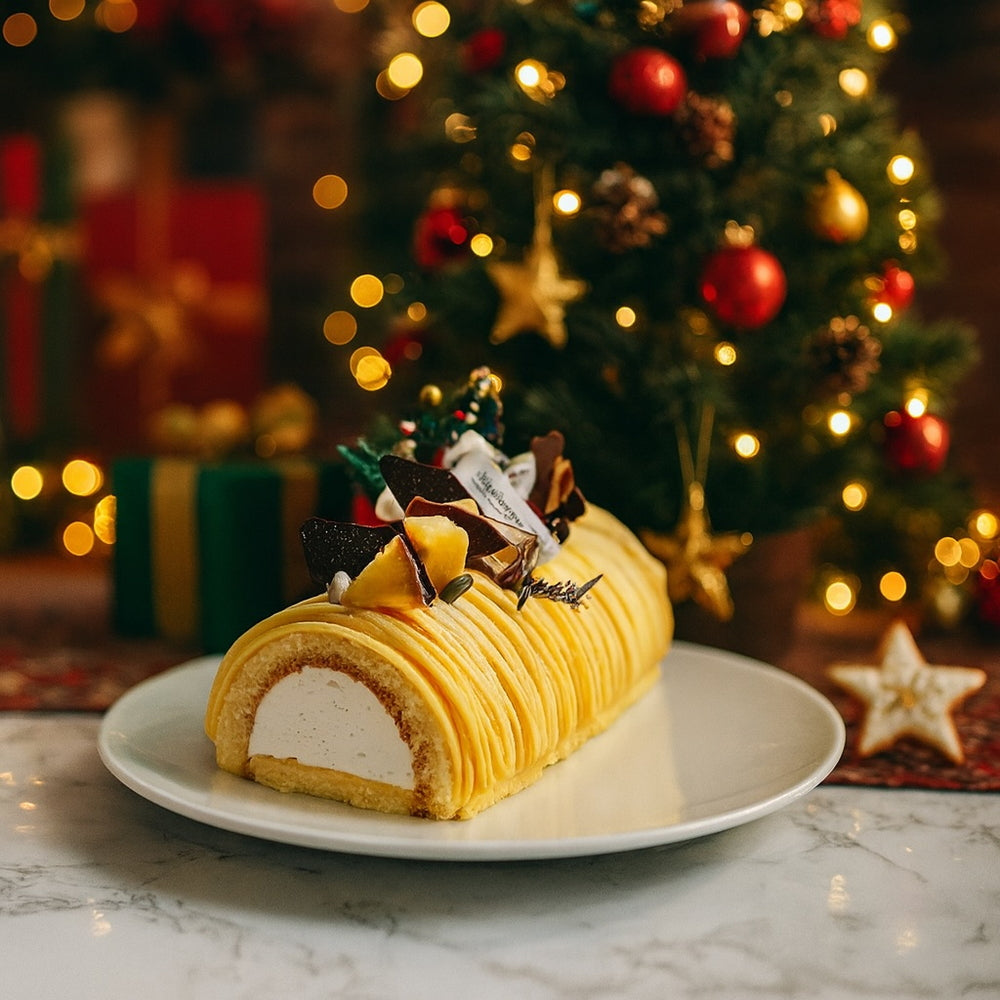 パティシエが作るロールケーキはしっとりした舌触りの良い生地にカスタードクリームと生クリームが最も美味しいとパティシエが考える黄金律で2層のロールケーキに仕上げました。
