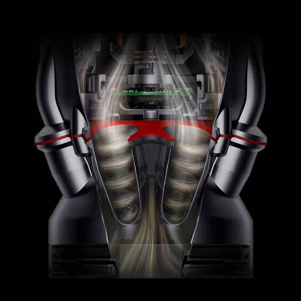 ダイソンの革新的な8つのサイクロンが96,000Gもの遠心力を生み出し、微細なホコリを空気から分離し、変わらない吸引力を実現します。