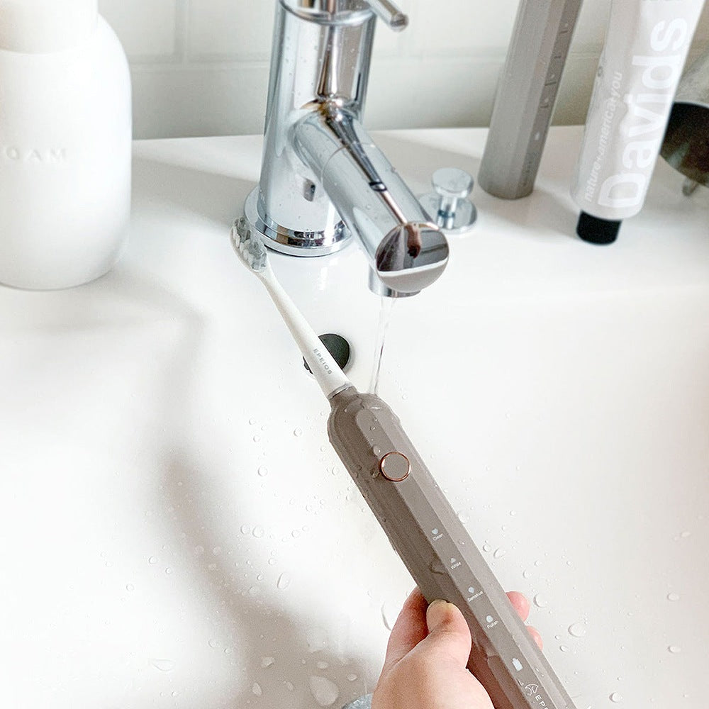 EPEIOSの電動歯ブラシは、手動の歯ブラシと比較して、より効率的に歯垢や汚れにアプローチし、まるで歯医者さんでクリーニングをうけた後のようなツルツル感を実感いただける機能性とデザイン性を兼ね備えました。