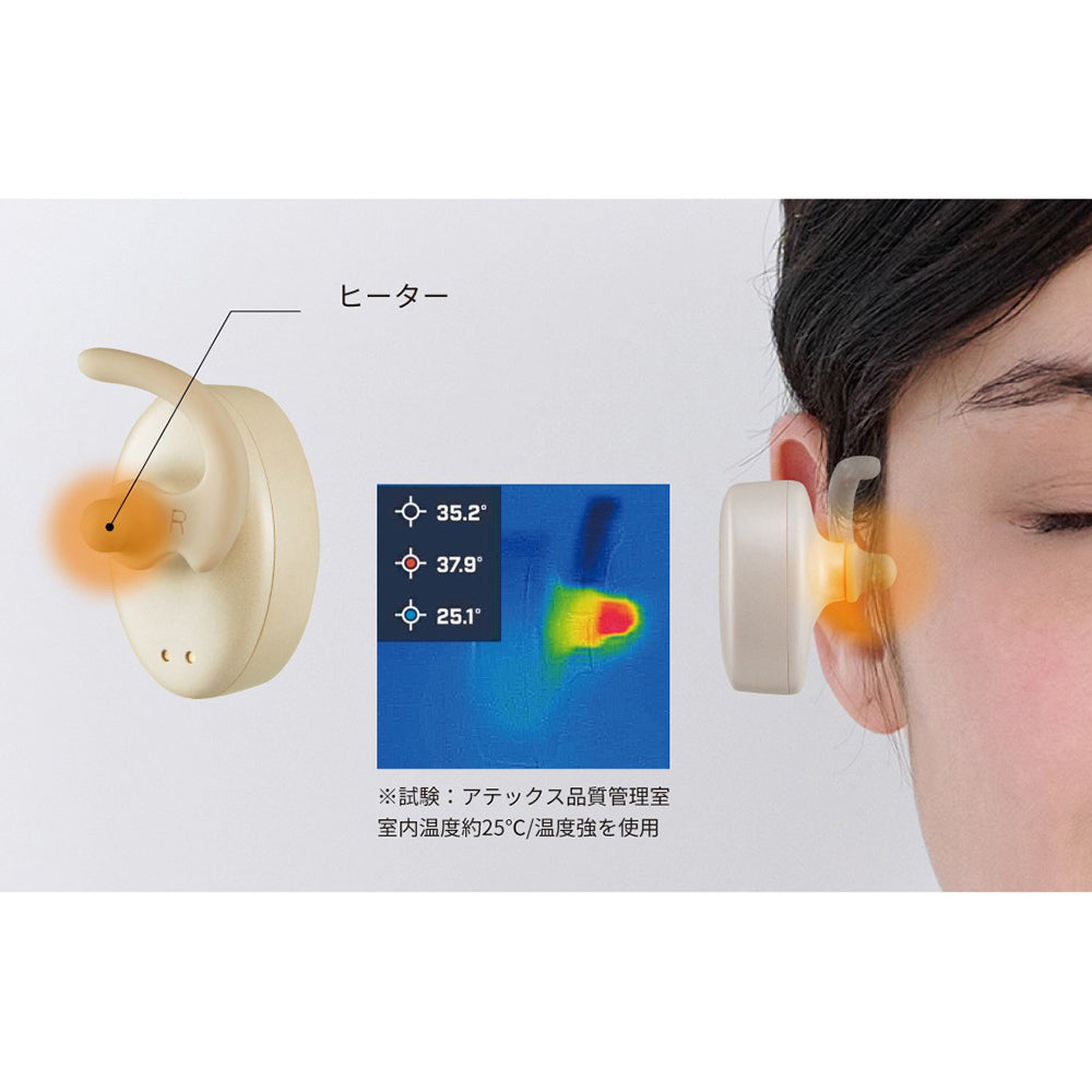 耳をじんわり温める日本初※充電式イヤホン型ヒーターです。