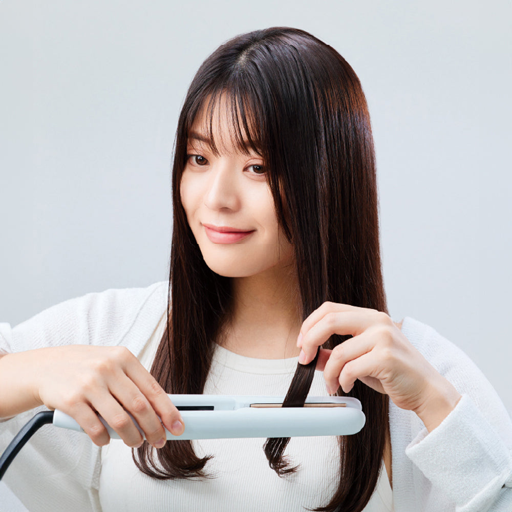 シルクプレート部分がクッションになっているので、ストレートアイロンにありがちな毛先のカクつきが抑えられ、髪の毛をつぶさずにスタイリングできます。誰でも簡単に、理想のまっすぐストレートヘアに。