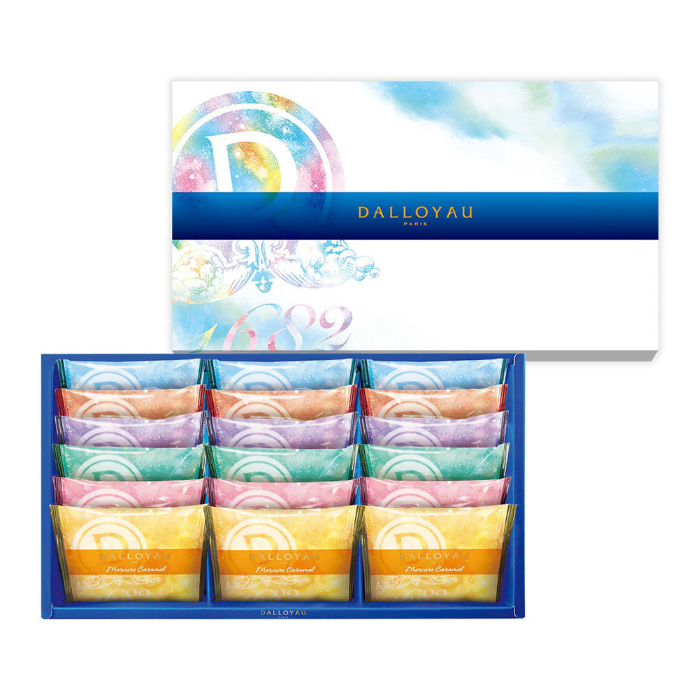 ■商品内容:ダロワイヨ コフレ ユニヴェール トロワ(テヴェール、ショコラ、カフェ、キャラメル、テ、フレーズ各3枚)計18枚入