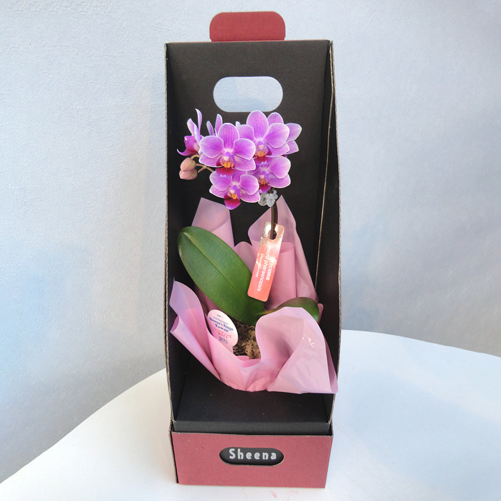 ■商品内容:マイクロ胡蝶蘭 2WAYBOX入り(2.5号鉢1本立ち 淡ピンク)