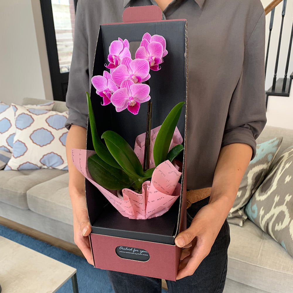 マイクロ胡蝶蘭 2WAYBOX入り(2.5号鉢1本立ち 淡ピンク)