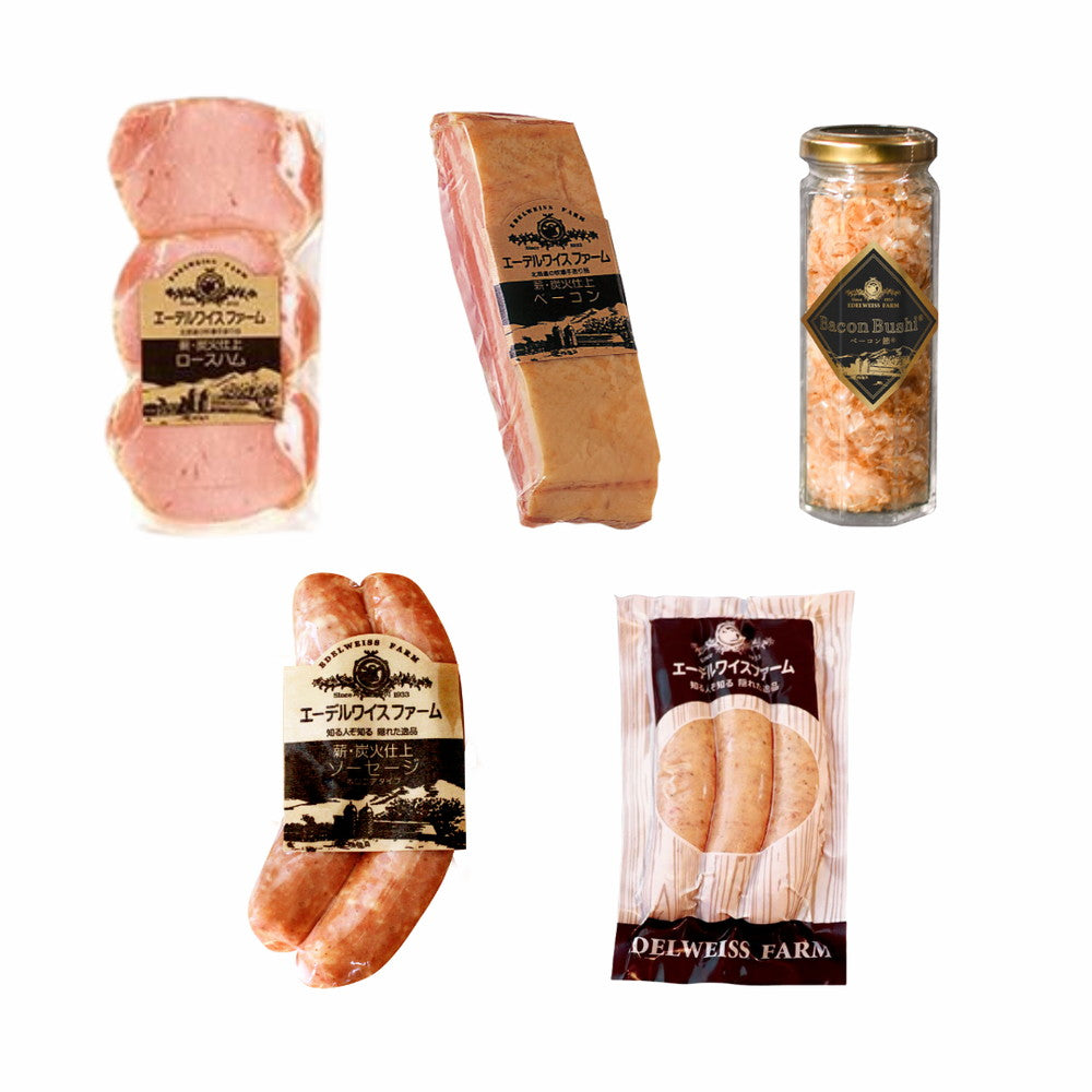 北海道・誕生90余年 長期氷温熟成製法 「エーデルワイスファーム」薪・炭火仕上げべーコン・ソーセージギフト E