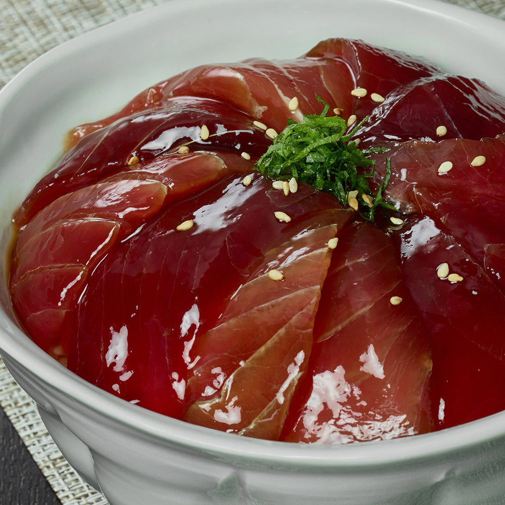 ■漬けまぐろは、忙しい方でも簡単!まな板いらずで、パックのまま流水に4~5分程つけていただくだけで解凍できます。お子様から年配の方まで召し上がりやすいように甘めの味付けとなっております。酢飯や白米の上にきれいに盛り付けして、お好みで炒り胡麻や刻み海苔、わさびを添えれば、おいしい漬けまぐろ丼の完成です。お茶漬けにして召し上がるのも、おすすめです。