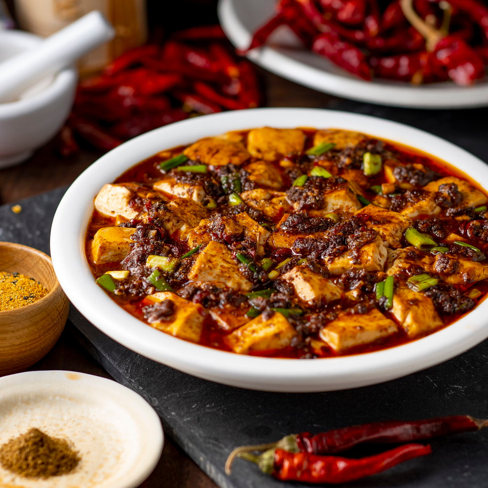 ■日本三大和牛の一つ米沢牛を使用した麻婆豆腐の素です。本格四川風に仕上げており、香辛料のしびれや辛さ香りの後に、和牛の旨味が追いかけてくる贅沢な味わいです。旨味やコクを出す為に、牛脂を用いました。別添の山椒は中国四川省の漢源省で取れる花椒で、しびれと独特の香りが本場の味わいを再現するのに大きな役割を担いました。1箱あたり2~3人前となります。