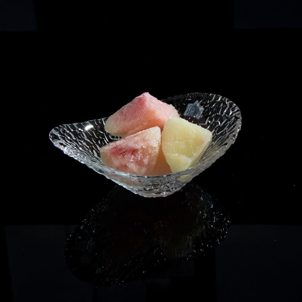 ■山形で育った完熟の白桃を、一番おいしい旬のタイミングで-30度の液体アルコールに漬けて凍眠冷凍しました。半解凍でシャーベットでお召し上がりいただくほか、ジュースやお酒の氷の代わりとして、スムージーやデザートのトッピングなど、フルーツ本来の香りや甘さをお楽しみください。
