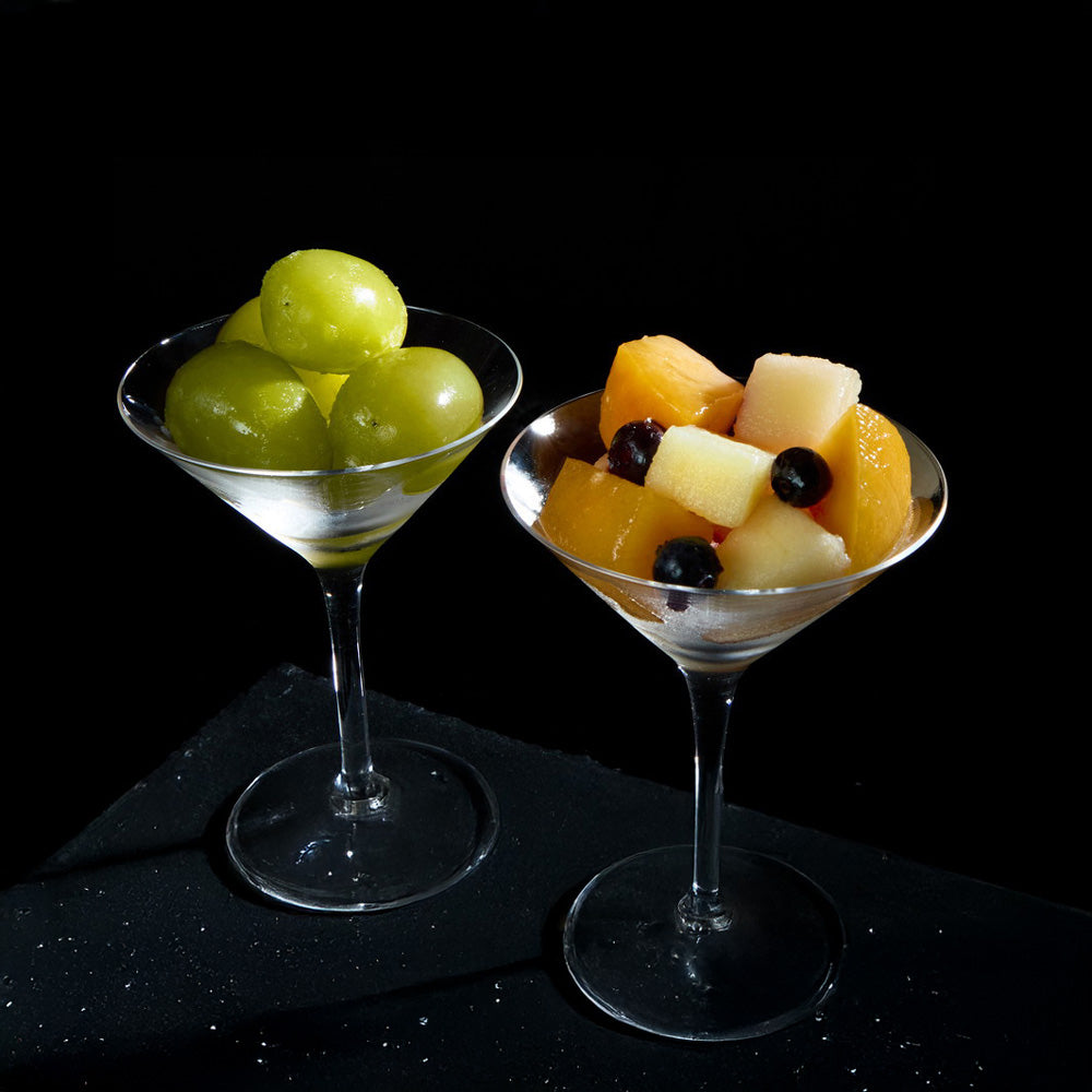■皮ごと食べられる大粒のシャインマスカットと、山形で育ったりんごと黄桃、ブルーベリーをミックスしたパックの2種を、一番おいしい旬のタイミングで-30度の液体アルコールに漬けて凍眠冷凍しました。半解凍でシャーベットでお召し上がりいただくほか、ジュースやお酒の氷の代わりとして、スムージーやデザートのトッピングなど、フルーツ本来の香りや甘さをお楽しみください。