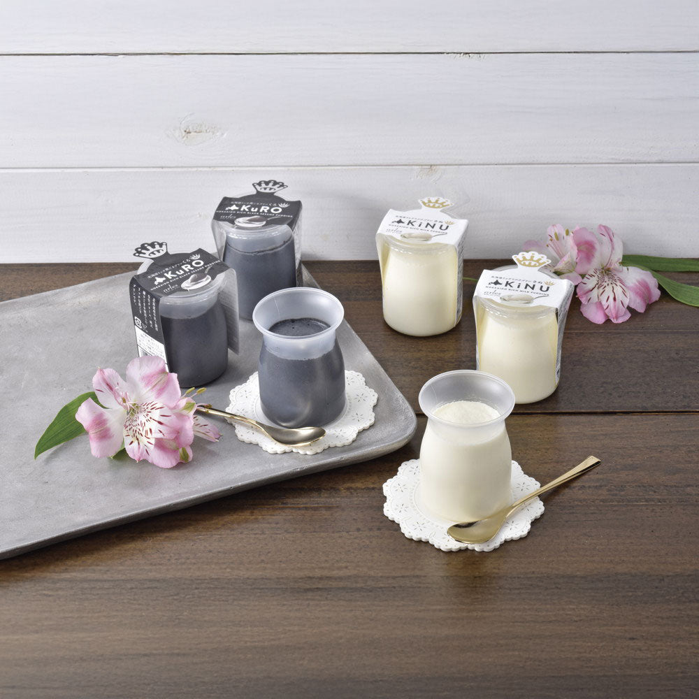 KuRO:北海道産生クリームと北海道産牛乳をベースに作られたリッチミルクプリンに純正黒ごまのペーストを加えた黒ごまプリンです。