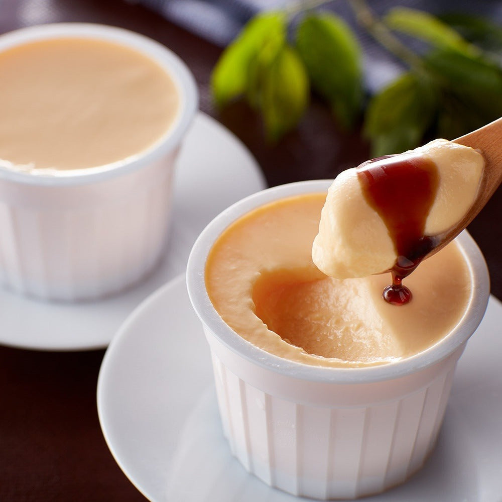 水たき料亭「博多華味鳥」で人気の卵ぷりんは、甘みと強いコクが特徴の「華味卵」を使用しております。濃厚で上品な甘さの卵ぷりん、黒みつをかけてお召しあがりください。