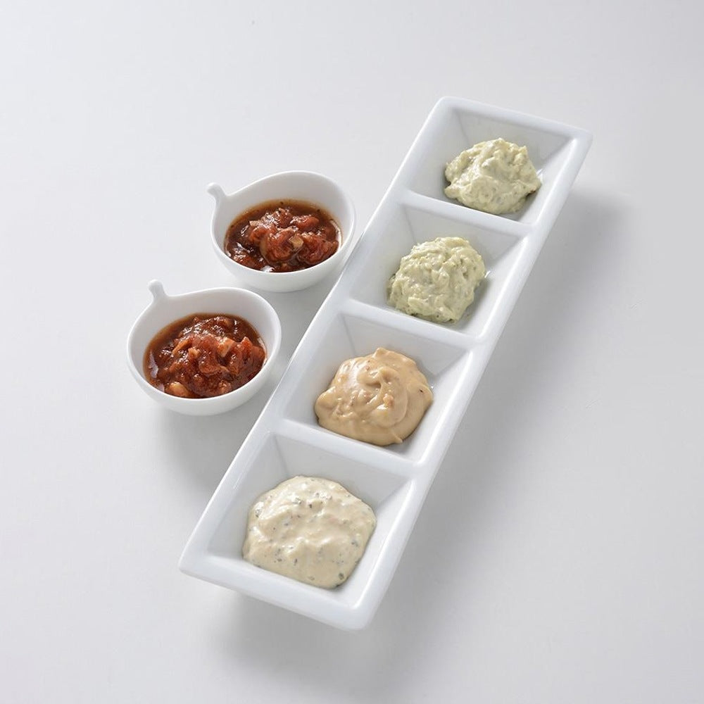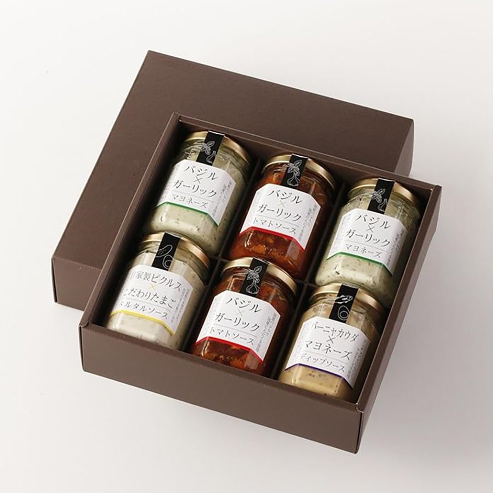 ■内容量:バジル&ガーリックマヨネーズ130g×2、バジル&ガーリックトマトソース130g×2、タルタルソース130g×1、バーニャカウダ&マヨネーズディップ130g×1