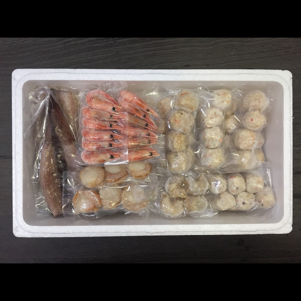 ■「かに入つみれ」・「えび入つみれ」・「とりごぼうつみれ」・「たこ入つみれ」など、ボリュームいっぱいのつみれを主役に「えび」や「いか」等の魚介を詰め合わせました。「4種のつみれ」と「各具材」の旨味が鍋いっぱいに広がります。ご自宅の野菜も一緒に煮込んでからお楽しみください。