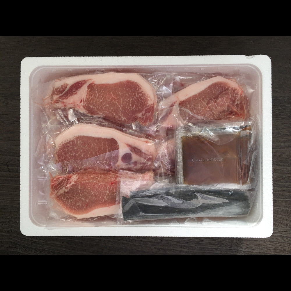■北海道の真狩村で「シナモン」・「オレガノ」・「ジンジャー」・「ナツメグ」など4種類のハーブを加えた純植物性の飼料で育てられた「ハーブ豚」のロース肉をしゃぶしゃぶ用にスライス。肉質が柔らかく甘味のある「ハーブ豚」本来の旨味をしゃぶしゃぶでお楽しみください。ご自宅の野菜も一緒にご調理ください。