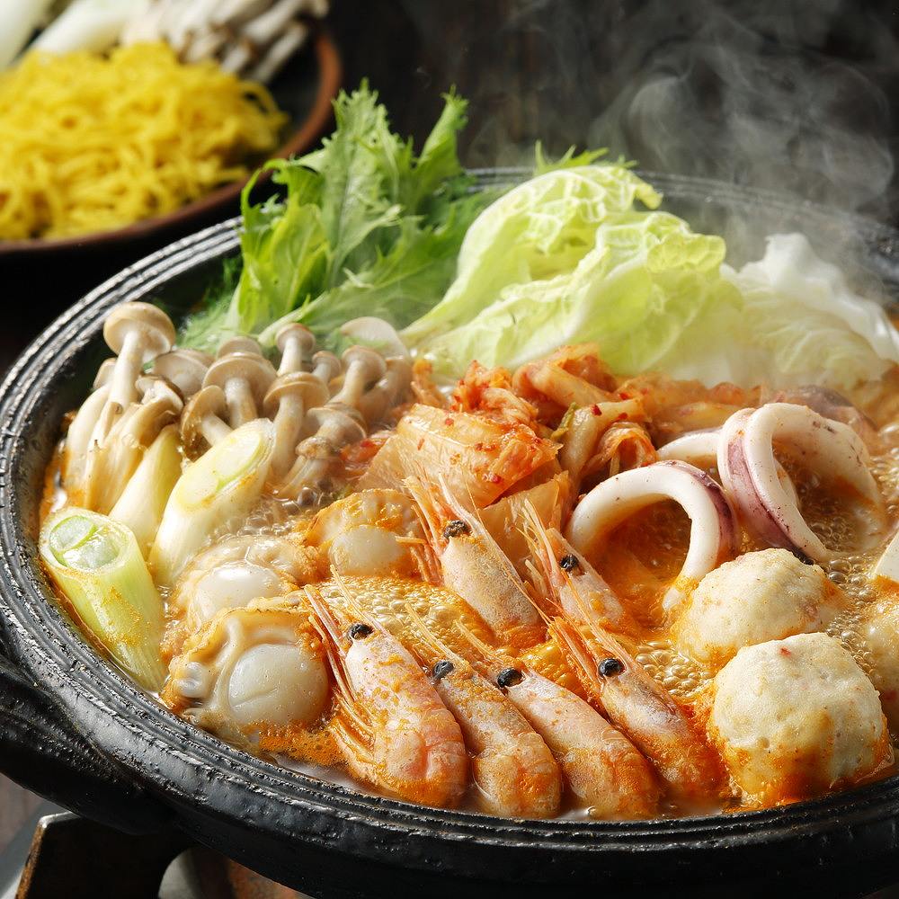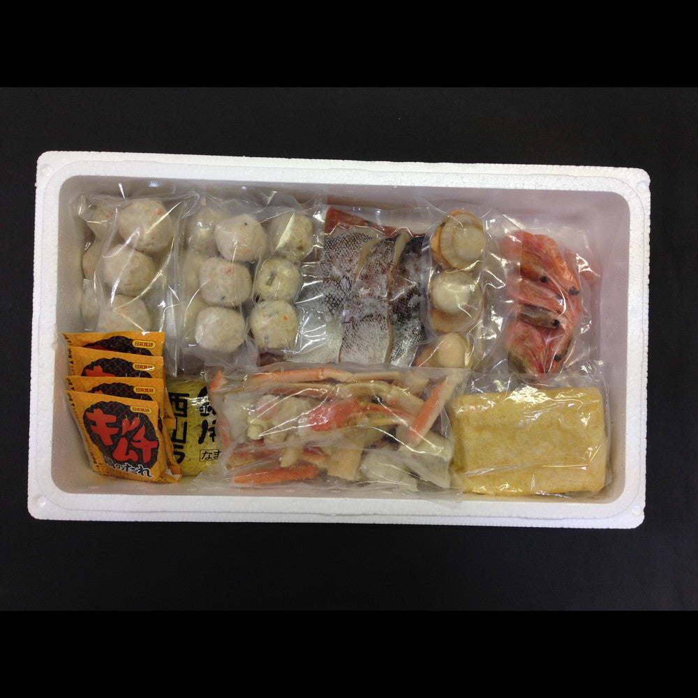 ■本場韓国の白菜キムチを使い、多彩な魚介を詰め合わせました。ピリ辛の「キムチ鍋」でお召し上がりください。