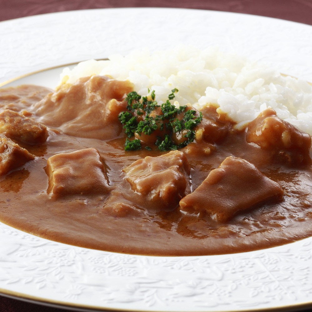 ■1962年の開業以来、「世界をもてなすホテルオークラ」を合言葉に、日本や世界の賓客をもてなし続けるホテルオークラ。デミグラスソースをベースに果実酒や赤ワインを加えたコクのある風味豊かなソースをベースに、生クリームを加えたまろやかな味わいのビーフストロガノフと、黒毛和牛と野菜の旨みが溶け込んだスパイシーなビーフカレーのセットです。