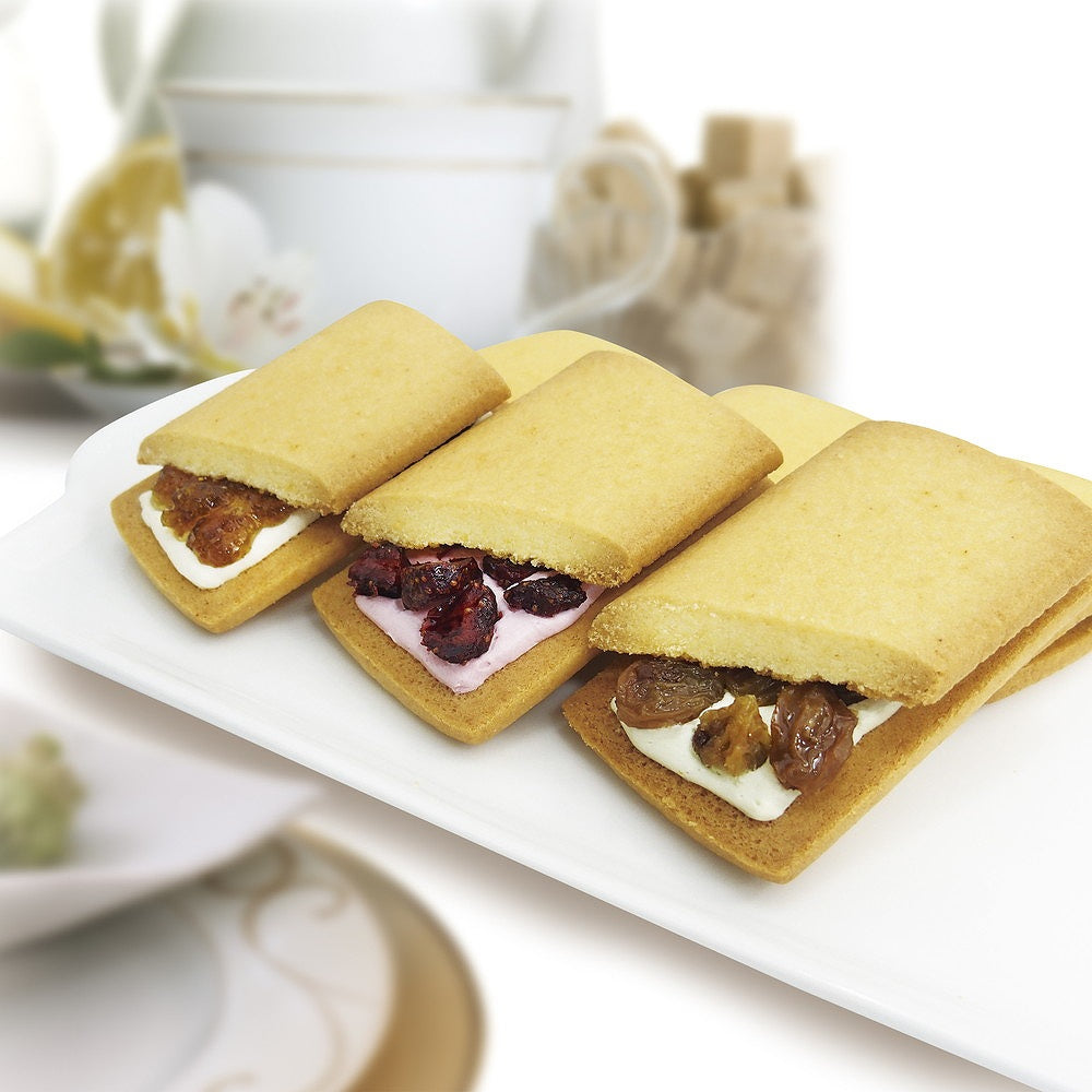 ■なめらかで口当たりのやさしいフルーツクリームと、香り豊な果肉を、香ばしいクッキーでサンドした銀座千疋屋オリジナルのフルーツサンドです。