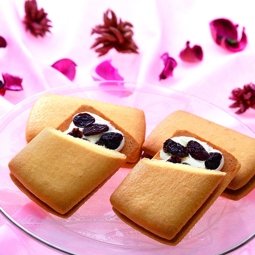 ■洋酒の香りをまとったレーズンを、上品な甘さの特製クリームとサンドしました。なめらかなクリームと香り豊かなレーズンのハーモニーをお楽しみください。