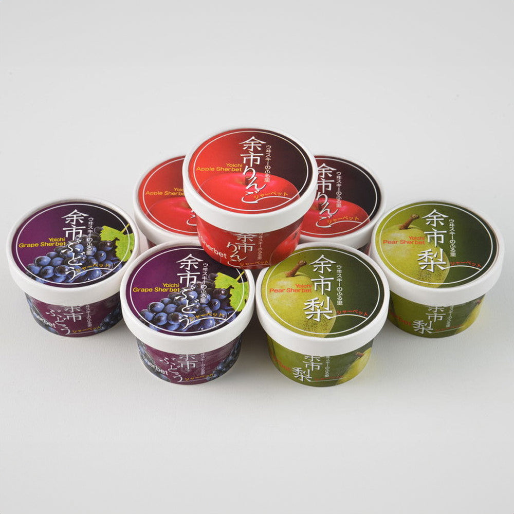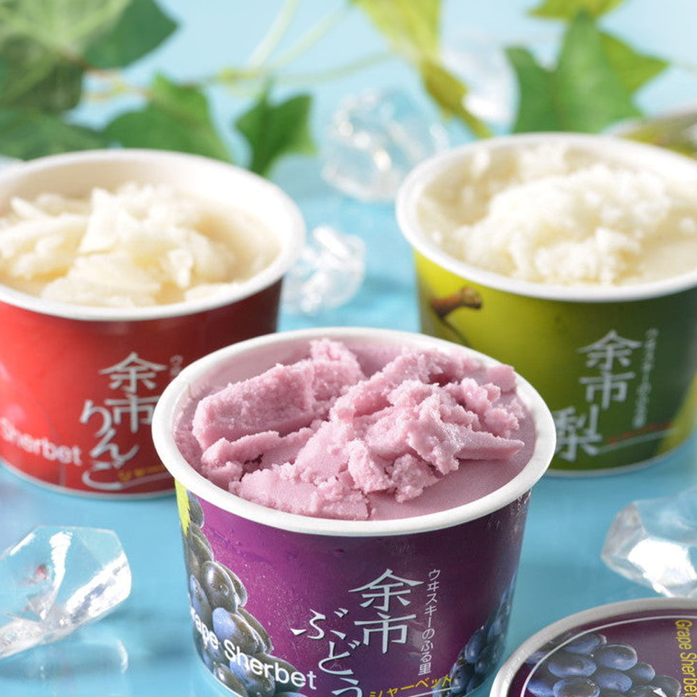 ■内容量:りんご100ml×3、ぶどう100ml×2、梨100ml×2■冷凍便でお届けします。■賞味期限:アイスクリームのためなし■十勝産の生乳と余市産のフルーツ果汁を使用したちょっとリッチなシャーベット。■産地/製造地:北海道